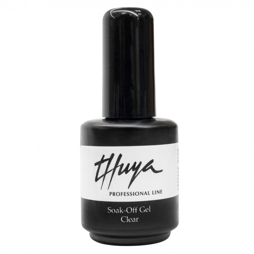 DE BIAB van Thuya, ook Builder In A Bottle genoemd, is het product dat in jou salon niet mag ontbreken. Met dit product zorg jij ervoor dat de natuurlijke nagels verstevigd worden, niet meer afbreken en zo mooi kunnen groeien. Soak Off Gel Clear is een must have in je salon, een kleurloze lak, perfect voor mensen die wel versteviging willen maar niks opvallends. Ook handig te gebruiken bij nailart. Het is een zeer fijne builder die goed zichzelf egaliseert.