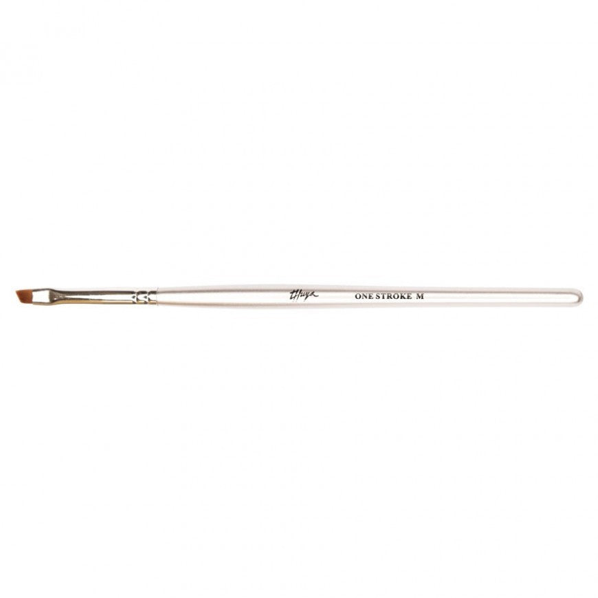 Houten penseel met synthetische haren in een schuine hoek. Perfect voor het uitvoeren van de One Stroke nageldecoratietechniek met gelverf. Dankzij de afgeschuinde punt kunt u gemakkelijk blaadjes, fijne lijntjes en kleine ornamenten creëren.