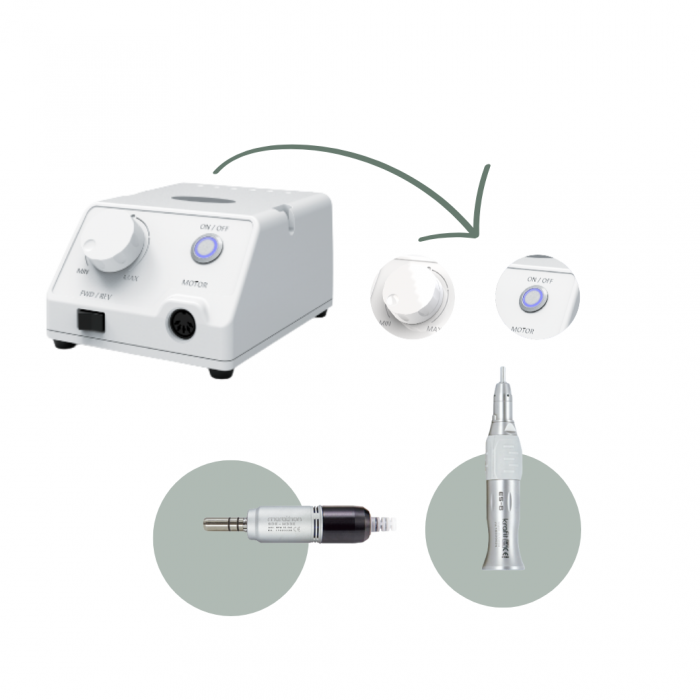 De Escort III Droogfrees is compact, maar krachtig en heeft een toerental van 35.000 t/min. Deze pedicuremotor heeft een extra sterke marathonmotor en is uitermate geschikt om te gebruiken met een Omnicut handstuk. De motor heeft geen stofafzuiging. Het handstuk bestaat uit twee delen wat het onderhoud eenvoudig maakt. Naast pedicurewerk is de Escort III ook geschikt voor professioneel manicure werk. De Escort III Droogfrees is voorzien van een dental handstuk.