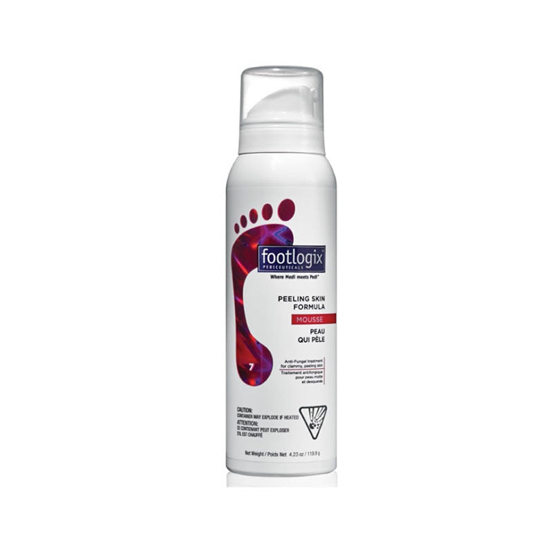 FOOTLOGIX® PEELING SKIN FORMULA met Dermal Infusion Technology® is de bewezen formule voor het verzorgen en beschermen van de klamme en schilferige huid tegen schimmelinfecties.