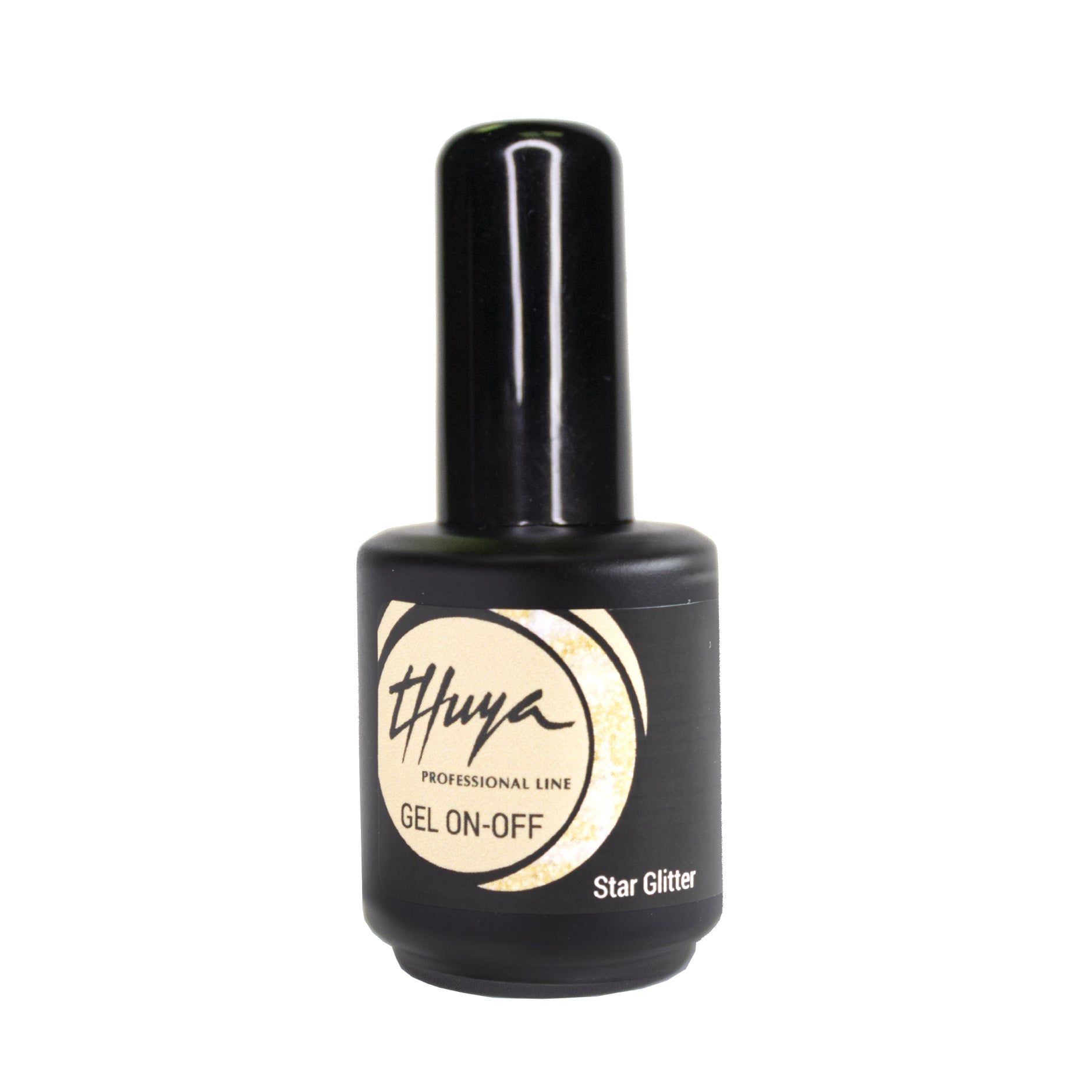 De Gel On-Off Star Glitter gellak van Thuya laat je schitteren als de sterren met een gouden kleur die je manicure spectaculair maakt.