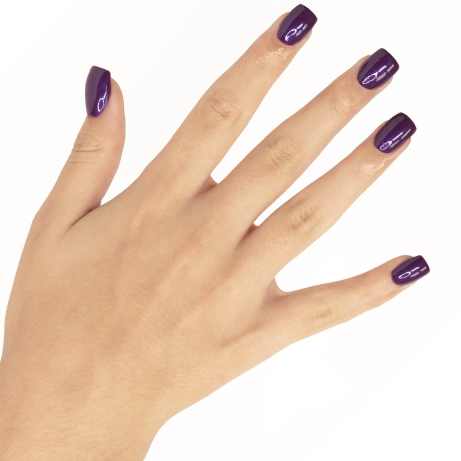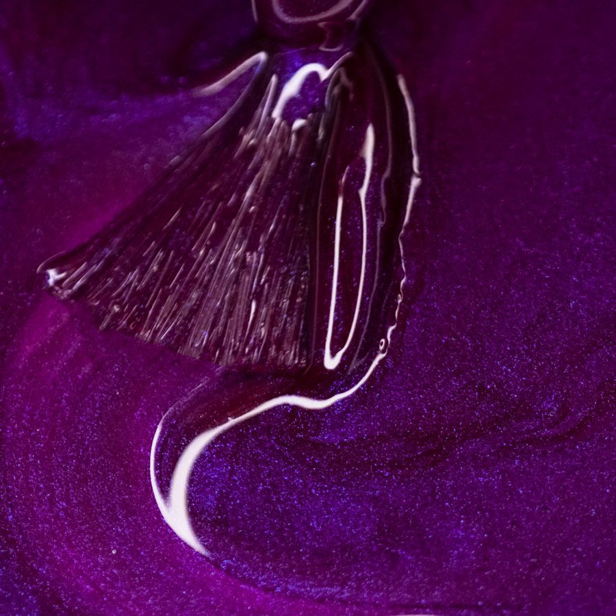 De Gel On-Off Ultraviolet gellak van Thuya is een levendige violette kleur met blauwachtige glitters, ideaal om je handen in de schijnwerpers te zetten.