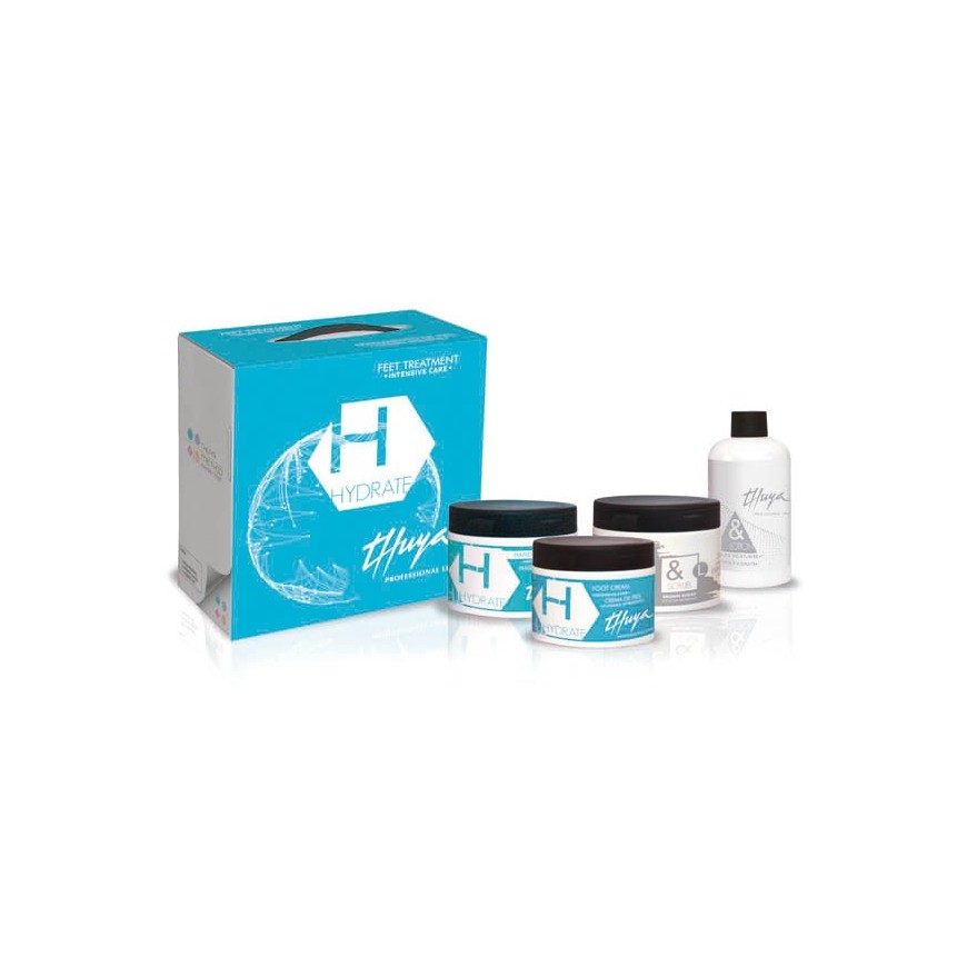 De Complete Hydrate Foot Kit bevat alle benodigde producten om deze geweldige voetverzorgingslijn uit te proberen. De kit bevat: Lotion reinigt en hydrateert 250 ml, Sterke Scrub 450 ml. Hand en voetmasker 450 ml, Voetcrème 450 ml.