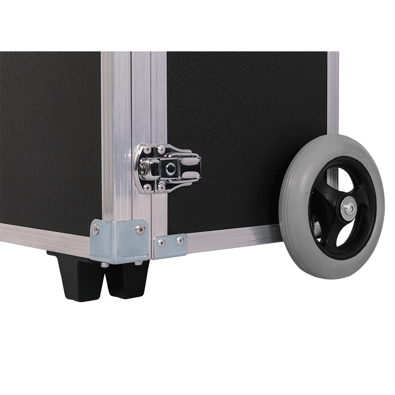 De koffers zijn standaard voorzien van grote wielen en sloten. Daarnaast is het mogelijk om de koffers te voorzien van luxe wielen en zwaardere sloten. Bij luxe wielen horen ook bijpassende doppen en tevens wordt de zwenkwiel vervangen door een dop. Met deze wielen komt de koffer hoger te staan en is er minder last van oneffenheden op de straat en het geeft minder lawaai.