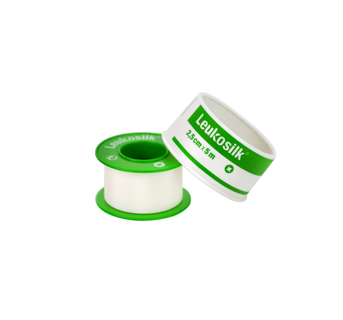 Leukosilk is een huidvriendelijke, hypo allergene en poreuze hecht/kleef pleister op basis van een witte non-woven polyester/viscose folie gemaakt van met de hand scheurbaar kunstzijde.