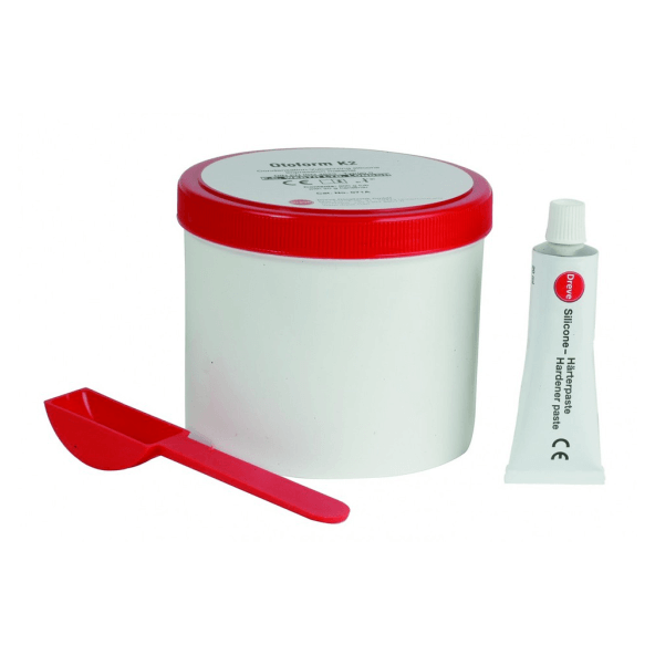 Otoform is een kneedbare 2 componenten pasta voor het maken van een iets stevige tot harde orthese.