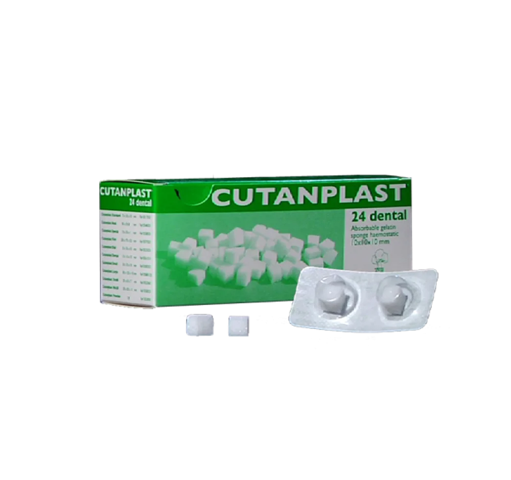 Cutanplast 24 Dental (Willospon) zijn steriele, (her) absorbeerbare en in water onoplosbare gelatines ponsjes met bloedstelpende werking. Cutanplast 24 Dental (Willospon) geeft geen schadelijke weefselreactie of een andere overgevoeligheidsreactie. Geschikt voor lokale bloed stelping.