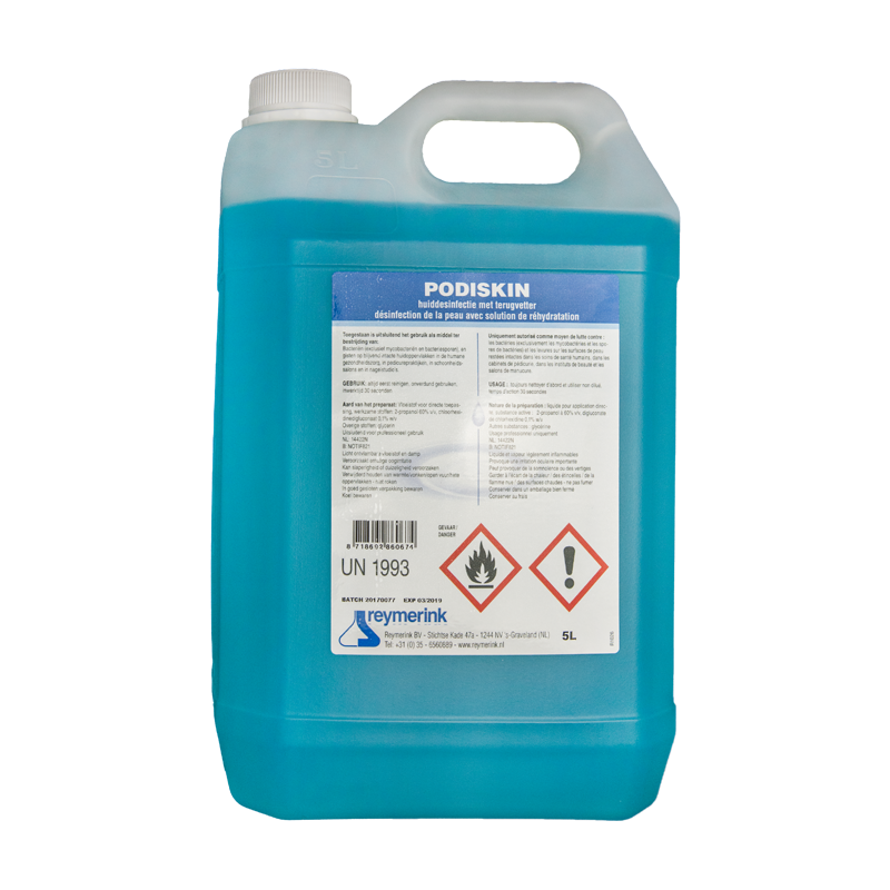 Podiskin huiddesinfectie met terugvetter, ter bestrijding van bacteriën (exclusief bacteriesporen en mycobacteriën) en gisten op blijvend intacte huidoppervlakken in de humane gezondheidszorg, in pedicurepraktijken, in schoonheidssalons en in nagelstudio’s.