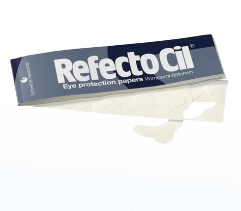 De blaadjes zijn van een speciaal soort papier, dat soepel op de huid sluit, de overtollige verf opneemt en de huid voor verkleuring behoedt. De blaadjes zijn makkelijk op hun plaats te houden door ze met een beetje RefectoCil afdekcrème vast te plakken.