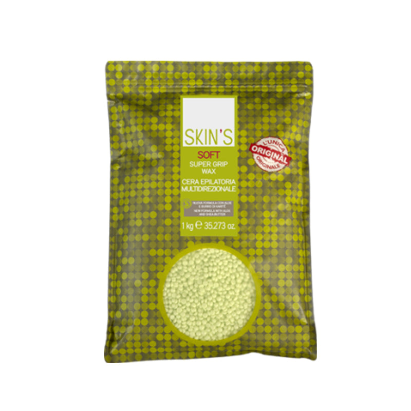 Een geel/groene wax. Deze “supergrip”-formule van Shea Butter en extracten van Aloë Vera en Mint bevat geen hars. De speciale formule met sheaboter zorgt voor een nog zachtere ontharing en is snel en gemakkelijk te bereiden. Dankzij extracten van Aloë Vera en munt is SOFT SUPER GRIP WAX extreem geschikt voor een zeer gevoelige huid. Richting waarop het opgebracht is naar keuze. Wel zo gemakkelijk! Tegengesteld afnemen met hele snelle beweging.